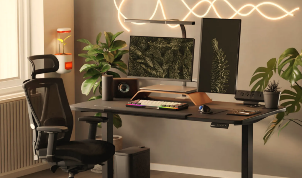 ウルトラワイドモニターの脚は大きくて机の上に置くと邪魔なのでモニターアームを使っています。モニターの下にスペースを確保することができます。
